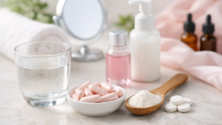 肌老化に内服サプリは有効?2023年レビュー論文をもとに、コラーゲン・ヒアルロン酸・美容サプリの根拠をやさしく解説。